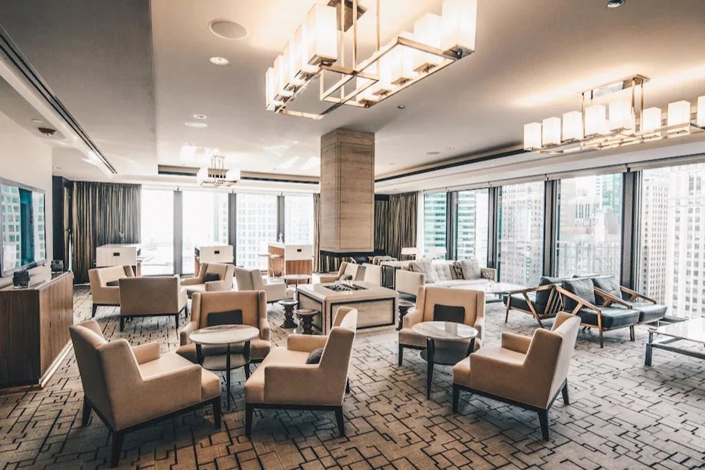 Panoramic city views and premium lounge spaces for evening relaxation.